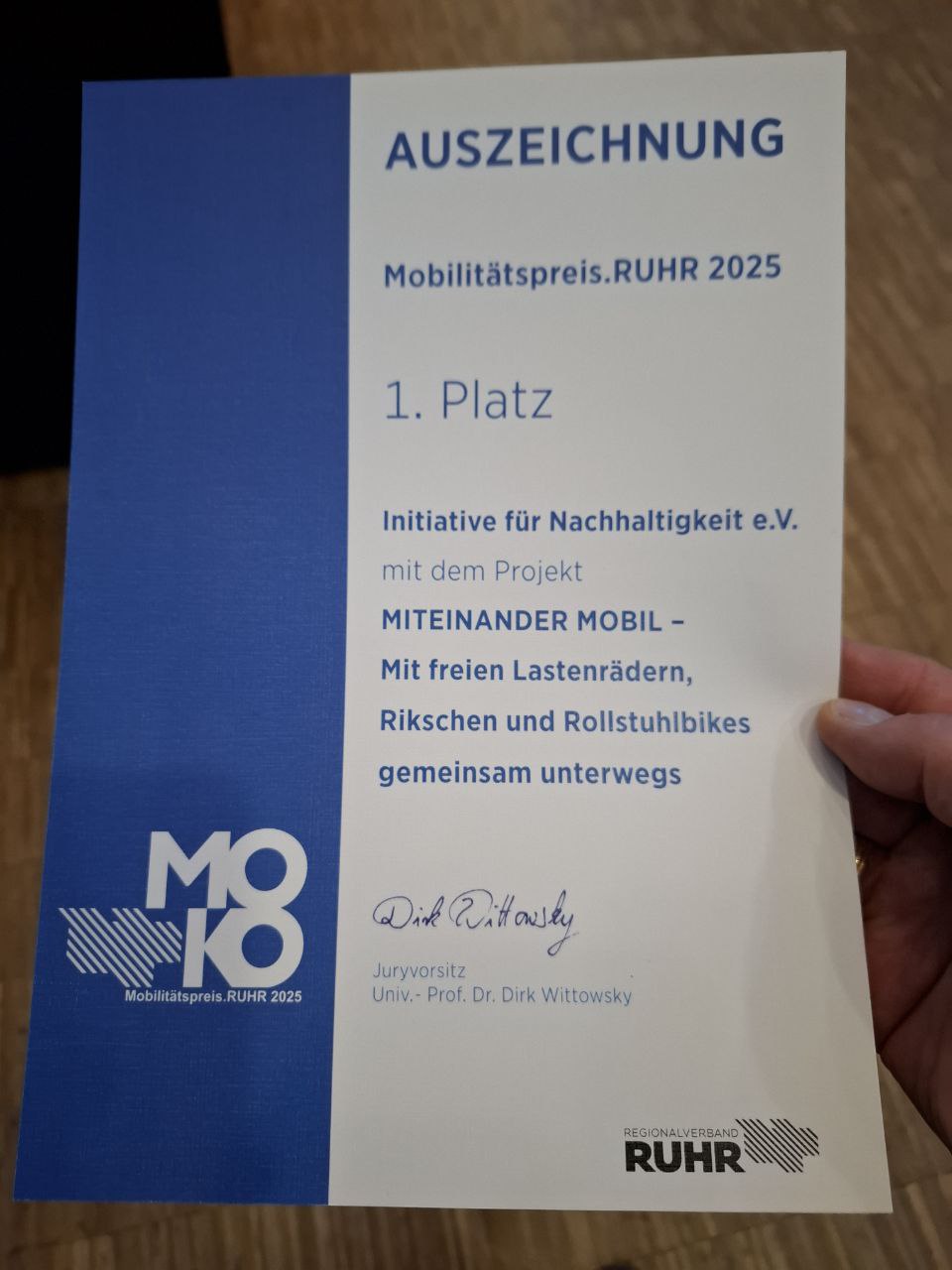Wir freuen uns sehr und sind dankbar: Der Regionalverband Ruhr (RVR) hat uns im Rahmen der Mobilitätskonferenz.RUHR (MOKO) mit dem 1. Platz des erstmals verliehenen Mobilitätspreis.RUHR ausgezeichnet. Verbunden ist diese Anerkennung mit einem Preisgeld von 3.500 Euro – vor allem [...]